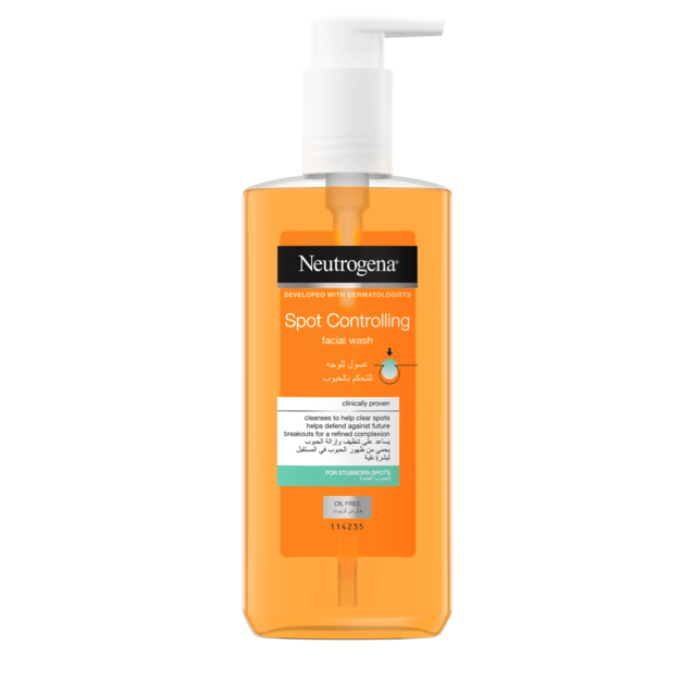 فعالية قصوى لتنظيف البشرة والتحكم في البقع من خلال تغلغل مسام البشرة بعمق للتخلص من البقع وحماية البشرة. يساعد غسول نيوتروجينا اليومي للتحكم في البقع على تنظيف الشوائب أو الحبوب من اليوم الأول كما أنه يحمي البشرة بعمق لتصبح أكثر نضارة ونعومة ومدعمة بالحماية القصوى. مع تقنية ™ClearDefend الحصرية من نيوتروجينا لإزالة البقع. أثبت مخبرياً عدم مساس غسول نيوتريجينا للتحكم في البقع بمغذيات البشرة الأساسية وفعاليته في تعزيز درع البشرة الطبيعي للمساعدة على تجنب ظهور شوائب أو حبوب. ملائم للبشرة الحساسة. يمنع ظهور البقع والحبوب لضمان بشرة خالية من العيوب مناسب لجميع أنواع البشرة 2% حمض الساليسيليك خالي من كبريتات السلفيت والزيت تم تطويره مع أطباء الجلدية المكونات: Aqua, Cocamidopropyl Hyroxysultaine, Sodium Methl Cocoyl Taurate, Glycerin, 2% Salicyclic Acid, Sodium Hydrolyzed Potato Starch Dodecenylsuccinate, C12-15 Alkyl Lactate, Lactic Acid, Panthenol, Cocamidopropyl PG-Dimonium Chloride Phosphate, PEG-120 Methyly Glucose Dioleate, Sodium Chloride, Disodium EDTA, Citric Acid, Sodium Hydoxide, Tocopherol, Benzalkonium Chloride, Parfum