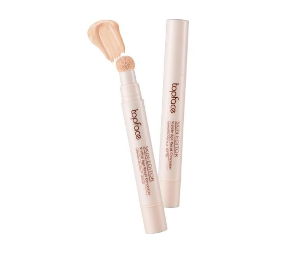 خافي عيوب مصحح من توب فيس: خافي عيوب من توب فيس يخفي هالات العين و عيوب البشرة و يوحد لونها بالإضافة إلى ملئ خطوط التجاعيد الدقيقة. قوامه سائل كريمي خفيف على البشرة ينساب بسهولة و يمنحك تغطية متوسطة و طبيعية و تدوم طويلا. مصمم برأس إسفنجي ليمنحك أفضل تطبيق و يمكنك زيادة كثافته بسهوله بدون أن يتجعد أو يتكتل. مثالي لتحصلي على بشرة خالية من العيوب.