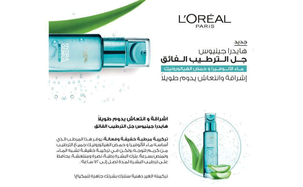 مرطب خفيف للوجه: يمنحك هذا المرطب ذو الأساس المائي والتركيبة الخفيفة غير الدهنية نفس ترطيب كريم الوجه لكن بخصائص ترطيب جل الوجه وبأساس مائي سريع الامتصاص. يجعل البشرة رطبة ونضرة ومشرقة. مرطب سائل للبشرة العادية إلى الجافة: يتميز هذا المرطب السائل بتركيبة خفيفة من حمض الهيالورونيك وماء الالوفيرا سريع الامتصاص. يرطب البشرة لمدة تصل إلى 72 ساعة. مستحضر جديد يمنح البشرة ترطيباً سريعاً وعميقاً ويدوم لفترة طويلة. مستوحى من الأساليب الآسيوية للعناية بالبشرة، التي توفر ترطيباً عميقاً مع سرعة الامتصاص بدون إرهاق البشرة. مكونات تحافظ على رطوبة البشرة: 1- خلاصة الالوفيرا النقية المعروفة بخصائصها المرطبة والغنية بالمعادن الأساسية. 2- حمض الهيالورونيك مكون نشط ويمكنه حمل 1000 مرة من وزنه من الماء. - ترطيب فوري يدوم طويلاً ونتائج واضحة.- ستبدو البشرة أكثر انتعاشًا ونعومة وأكثر مرونة على الفور. - بعد الاستخدام المتكرر، يرطب البشرة بشكل مكثف وطويل الأمد للحصول على بشرة أكثر إشراقاً. التزامات العناية بالبشرة من لوريال باريس: - يتم تقييم قوة تحمل منتجات العناية بالبشرة على جميع أنواع البشرة حتى الحساسة منها، وتم اختبارها تحت إشراف أطباء الجلدية مع 600 استخدام على الأقل. - أثبتت الكفاءة في الدراسات السريرية أو الاستهلاكية التي أجرتها معاهد مستقلة. - التزمت لوريال للعالم بعدم إجراء اختبارات على الحيوانات لأكثر من 30 عاماً. *اختبار عملي على 26 امرأة. الميزات والتفاصيل يحتوي على ماء الالوفيرا وحمض الهيالورونيك مرطب سائل يدوم لمدة 72 ساعة يتميز بتركيبة خفيفة وغير دهنية وسريعة الامتصاص يجعل البشرة متألقة ومنتعشة على الدوام يجعل البشرة جاهزة للمكياج مناسب للبشرة العادية إلى الجافة. المكونات : 782953 6 مكونات - اكوا/ماء ● عصير أوراق الصبار باربادنسيس ● جليسرين ● كحول دينات. ● هيدروكسي ثيلبيبرازين إيثان حمض السلفونيك ● بنتيلين جليكول ● ثنائي الصوديوم EDTA ● حمض الهيالورونيك ● سيلانيتريول ● هيالورونات الصوديوم ● هيدروكسيد الصوديوم ● أوكتيل دوديكانول ● بولي الأمونيوم الأكريلويل الأكريلويل ثنائي ميثيل تورات ● بوتيلين جليكول ● كابريليل جليكول ● حمض الستريك ● إيثيل هكسيل بالميتات ● هيكسيل جليكول ● بولي إيثيلين جلايكول ● بولي إيثيلين جلايكول ميثيل 20 ميثيل جلوكوز سيسكستيرات ● بولي إيثيلين جلايكول 60 هيدروليك. الخالخالخالخالختم تم إنزيت ● سيليكا ثنائي ميثيل سيليلات [نانو] / سيليكا ثنائي ميثيل سيليلات ● صمغ الزانثان ● ديميثيكون ● ليمونين ● لينالول ● CI 42090 / أزرق 1 ● فينوكسي إيثانول ● سوربوب البوتاسيوم ● إيإيإيإي● يو ام بنزوات ● حمض السوربيك ● توكوفيرول ● عطر / عطر ●