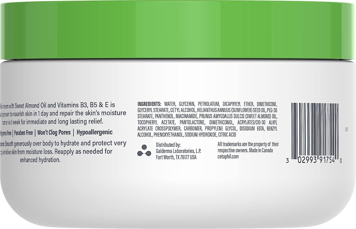 نوع البشرة: للبشرة شديدة الجفاف والجافة والحساسة ثبت سريريًا أن الكريم الغني يوفر ترطيبًا مكثفًا ودائمًا لمدة 48 ساعة. تم تركيبه خصيصًا بمزيج من النياسيناميد المدعوم من قبل أطباء الجلدية (فيتامين ب 3) والبانثينول (فيتامين ب 5) والجلسرين المرطب لتحسين مرونة البشرة الحساسة. تحسن كبير في حاجز الجلد في 3 أيام مع استعادة كاملة في أسبوع واحد. أفاد 97٪ من المستخدمين أن البشرة تبدو أكثر رطوبة بمرور الوقت. تم اختباره من قبل أطباء الجلدية وثبت سريريًا أنه لطيف على البشرة الحساسة.. كريم غني وغير دهني مُصمم خصيصًا بتركيبة جديدة ومحسنة تحتوي على مزيج مدعوم من أطباء الجلد من النياسيناميد والبانثينول والجلسرين المرطب لتحسين مرونة البشرة الحساسة. غني بزيت اللوز الحلو ، كريم الاستخدام اليومي هذا مثبت سريريًا أنه يوفر ترطيبًا مكثفًا ودائمًا لمدة 48 ساعة. يقاوم 5 علامات تدل على حساسية الجلد ، بما في ذلك ضعف حاجز البشرة ، والتهيج ، والخشونة ، والشد والجفاف.