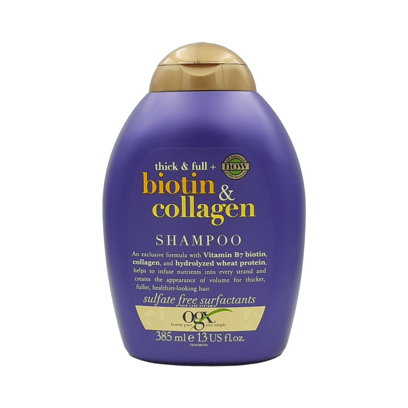 امتلئ حجم الشعر الرقيق باستخدام شامبو OGX Thick & Full + Biotin & Collagen لتكثيف الشعر. مثالي للشعر المسطح إلى المتوسط ​​الحجم ، هذا الشامبو الكثيف يترك الشعر ممتلئًا ويساعد على تكوين خصلات أكثر وفرة. تركيبة ممتلئة وغنية بالمغذيات مشبعة بفيتامين B7 البيوتين والكولاجين وبروتين القمح ، وتساعد في الحفاظ على نمو الشعر الذي يتمتع بمظهر صحي وأكثر كثافة. يحتوي المزيج اللذيذ أيضًا على بروتين القمح المتحلل للحصول على شعر أكثر كثافة وصحة. بالإضافة إلى ذلك ، فإن رائحة البرغموت والياسمين والفانيليا تجعل من الترطيب تجربة حسية شاملة تترك الأقفال برائحة طيبة لا تقاوم. خالي من البارابين مع مواد خافضة للتوتر السطحي خالية من الكبريتات ، يساعد هذا الشامبو المكثف على رفع كثافة خصلاتك ويتركها تشعر بفك تشابكها. للحصول على أفضل النتائج ، اتبعه بالبلسم مع مجموعة OGX Biotin & Collagen للعناية بالشعر للمساعدة في ضخ العناصر الغذائية في كل خصلة.
