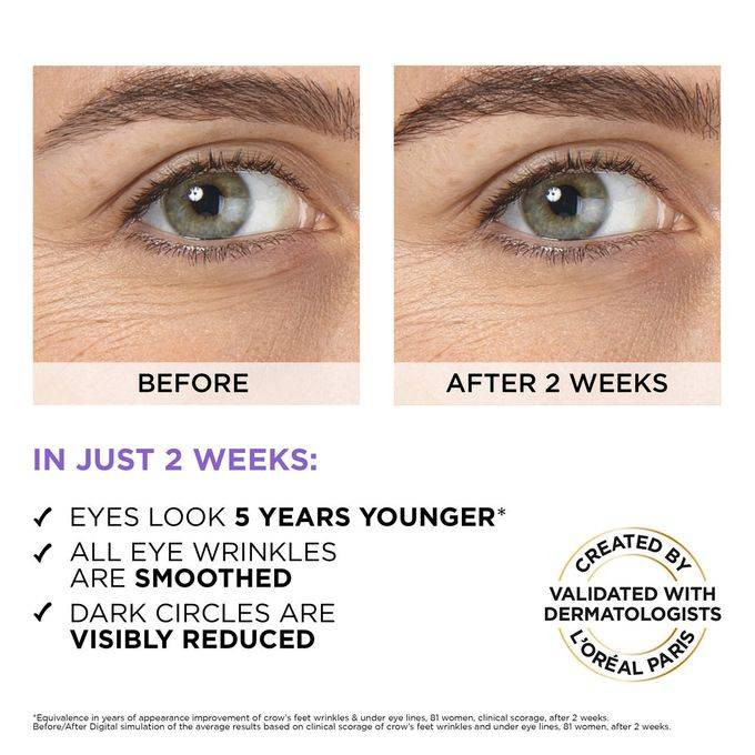 1.5٪ حمض الهيالورونيك نقي ، 1٪ سيروم كافيين نقي للعين لازالة الانتفاخ وتقليل ظهور التجاعيد. قضيب تبريد "بكرة ثلاثية" لتدليك محيط العين بالكامل للمساعدة على إزالة انتفاخ أسفل العينين بشكل ملحوظ. عيون تبدو أصغر سنا وأقل تعبا. مع مرور الوقت ، تبدو الهالات السوداء أكثر إشراقًا بشكل ملحوظ. المكونات : AQUA / WATER GLYCERIN HYDROXYETHYLPIPERAZINE ETHANE SULFONIC ACID NIACINAMIDE SODIUM HYALURONATE CAFFEINE CITRIC ACID HYDROXYACETOPHENONE TRISODIUM ETHYLENEDIAMINE DISUCCINATE ASCORBYL GLUCOSIDE CAPRYLYL GLYCOL CHLORPHENESIN.