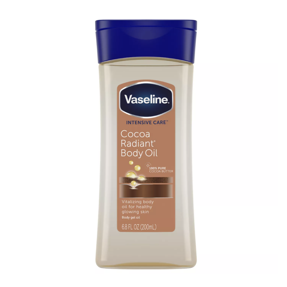 تجمع تركيبة Vaseline® Cocoa Radiant Gel Oil غير الدهنية ولكنها غنية بين زبدة الكاكاو النقية وزيت مجدد يمنح البشرة توهجًا طبيعيًا وصحيًا. جيدة ل بشرة باهتة فوائد زيت جل منشط للجسم لبشرة متوهجة صحية. مصنوع من الكاكاو النقي 100٪ ، هذا الزيت الجل للجسم يعزز توهجًا طبيعيًا. يساعد على تنشيط البشرة الباهتة وتحسين مظهرها. يمتص بسرعة لشعور غير دهني.